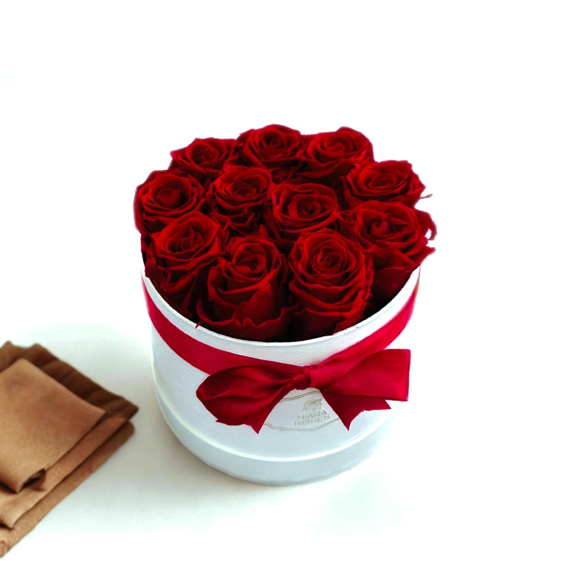 Discover preserved roses — beauty that remains fresh for few years. Personalized label box with 11 premium Ecuadorian preserved red roses in round box – Long-lasting and meaningful gifts, as unique birthday presents, anniversary gifts or just perfect home decors.