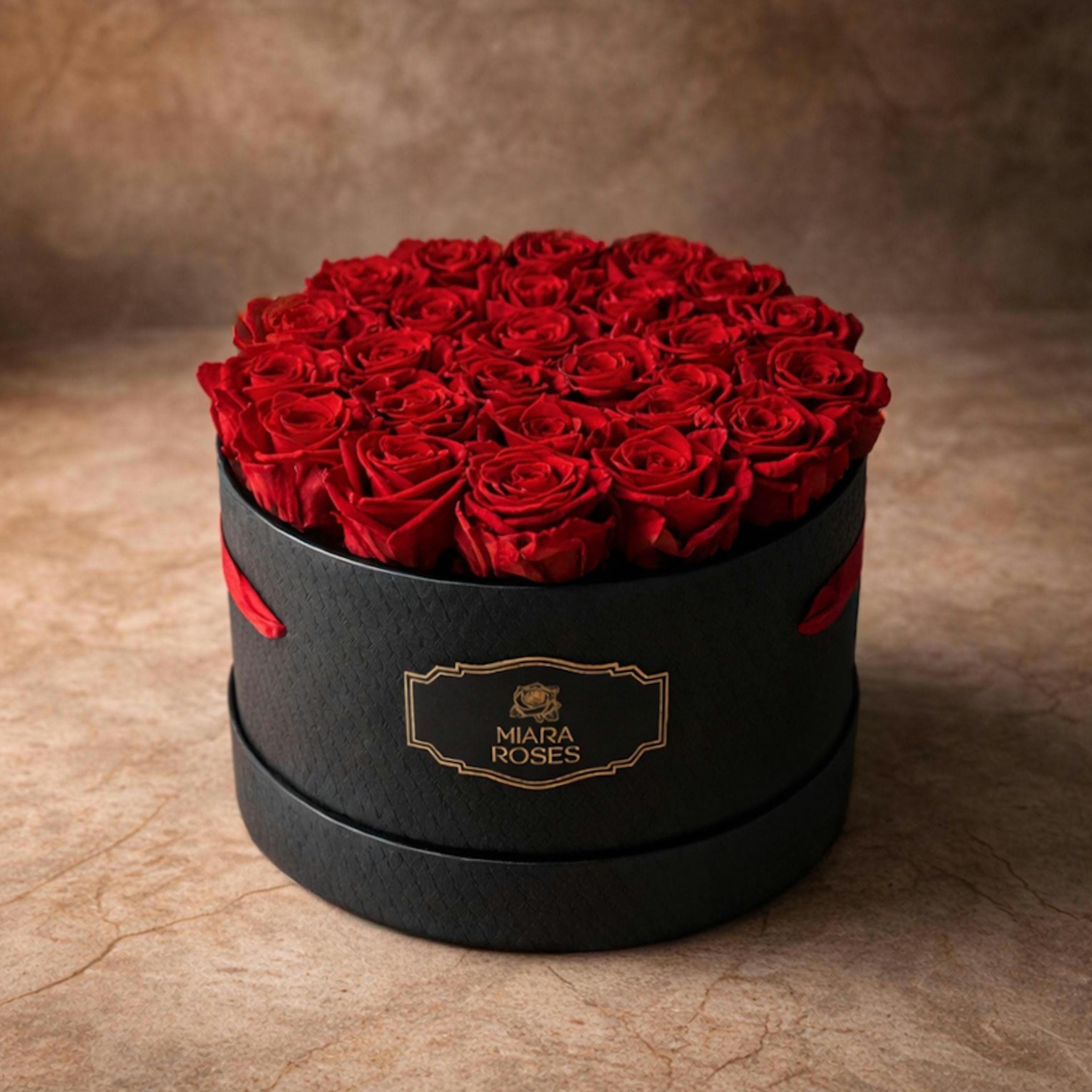 Experience Vibrant Red Infinty Roses in Large Black Rose Box with Ribbons. This is much more than a casual gift. This is a long-lasting statement — forever natural roses meant to stay fresh, seen and remembered for years. An everyday reminder of love, presence, intentions, and permanence, which matter more than trends or fleeting gestures.